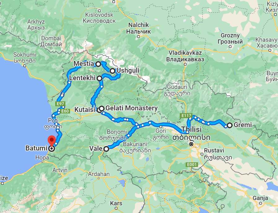 გზას გავაგრძელებთ სვანეთის მიმართულებით. ეს ულამაზესი მხარე, გამოხატული ინდივიდუალიზმით გამოირჩევა. კავკასიონის მწვერვალები, ციხე-კოშკები, ხუროთმოძღვრების ძეგლები, სახასიათო ფრესკული ნიმუშები, წეს-ჩვეულებები და მრავალფეროვანი, შთამბეჭდავი ბუნება, დაუვიწყარ შთაბეჭდილებებს ტოვებს მნახველში. დასახლება ულამაზესია ფერდზე შეფენილი საგვარეულო კოშკებისა (UNESCO) და მედიდური მწვერვალების ფონზე.